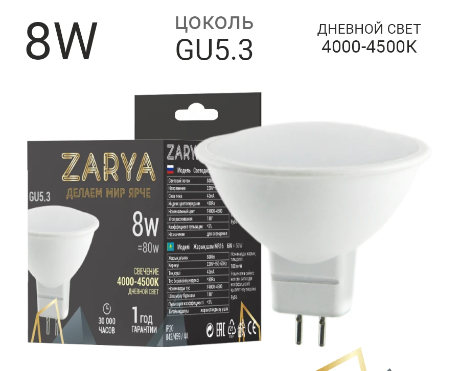 Лампа светодиодная MR-16 8w 4200К 220v