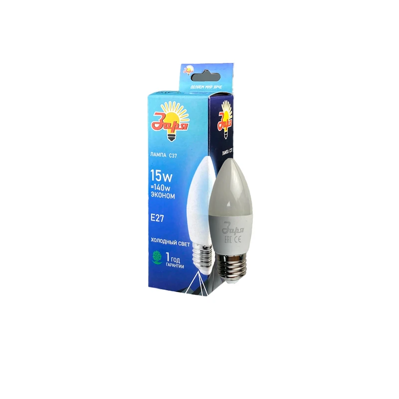 Лампа светодиодная пуля С35 пуля 15W Е27 6000-6500К (Заря) (эконом)