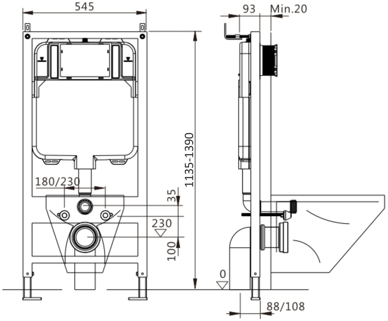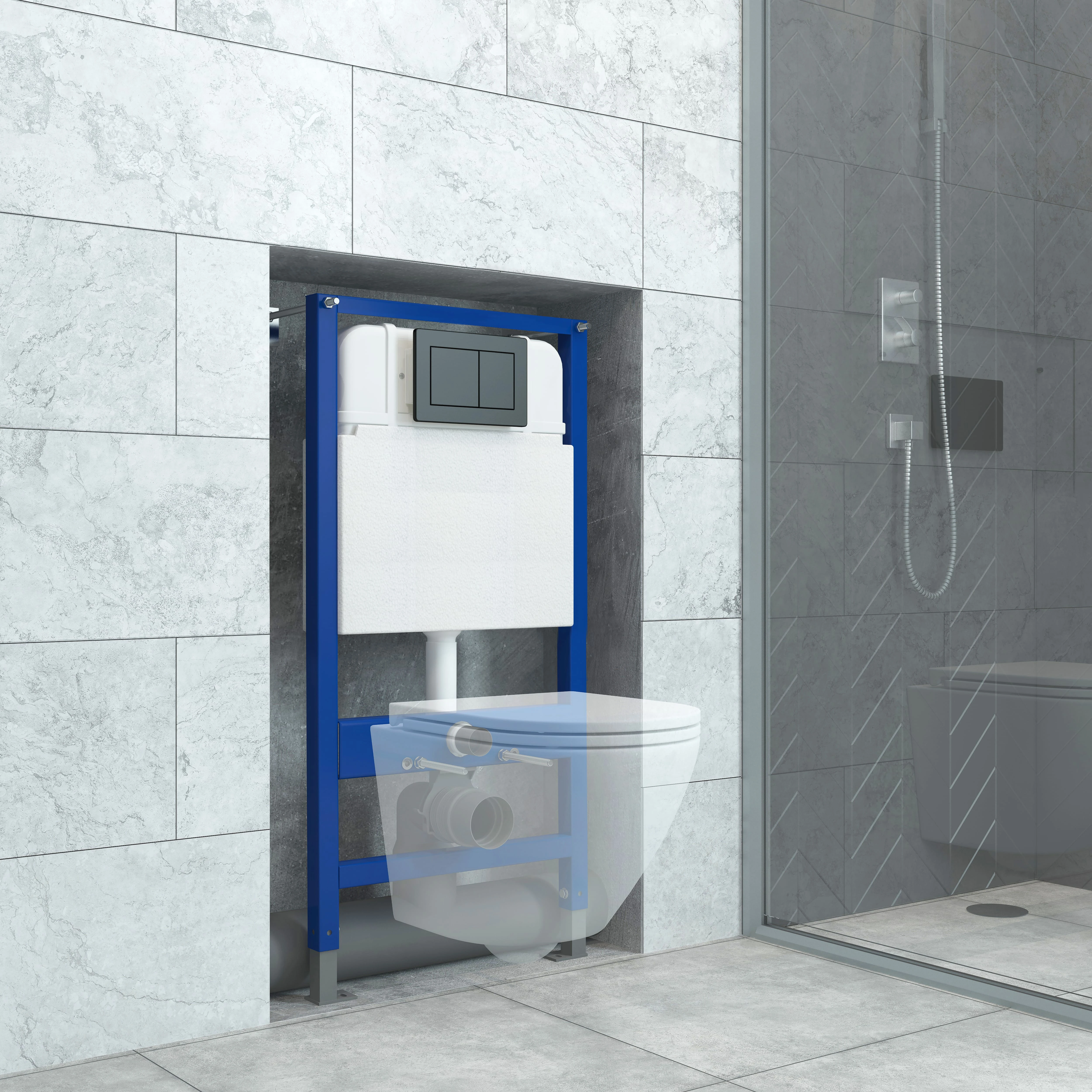 Инсталляция EvaGold 545-4 для подвесного унитаза кнопка пластик квадрат черный матовый