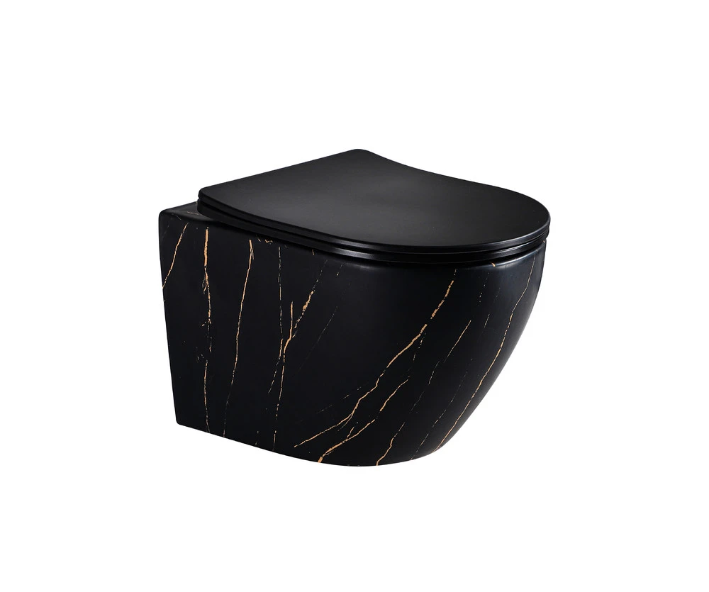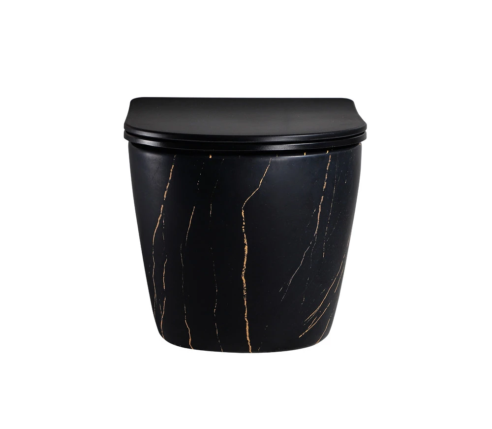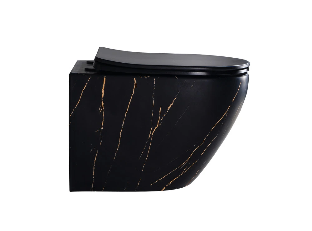 Унитаз подвесной EG505Black-G мраморчерное золото,безободковый,сид.черн.мат.тонкое ДП
